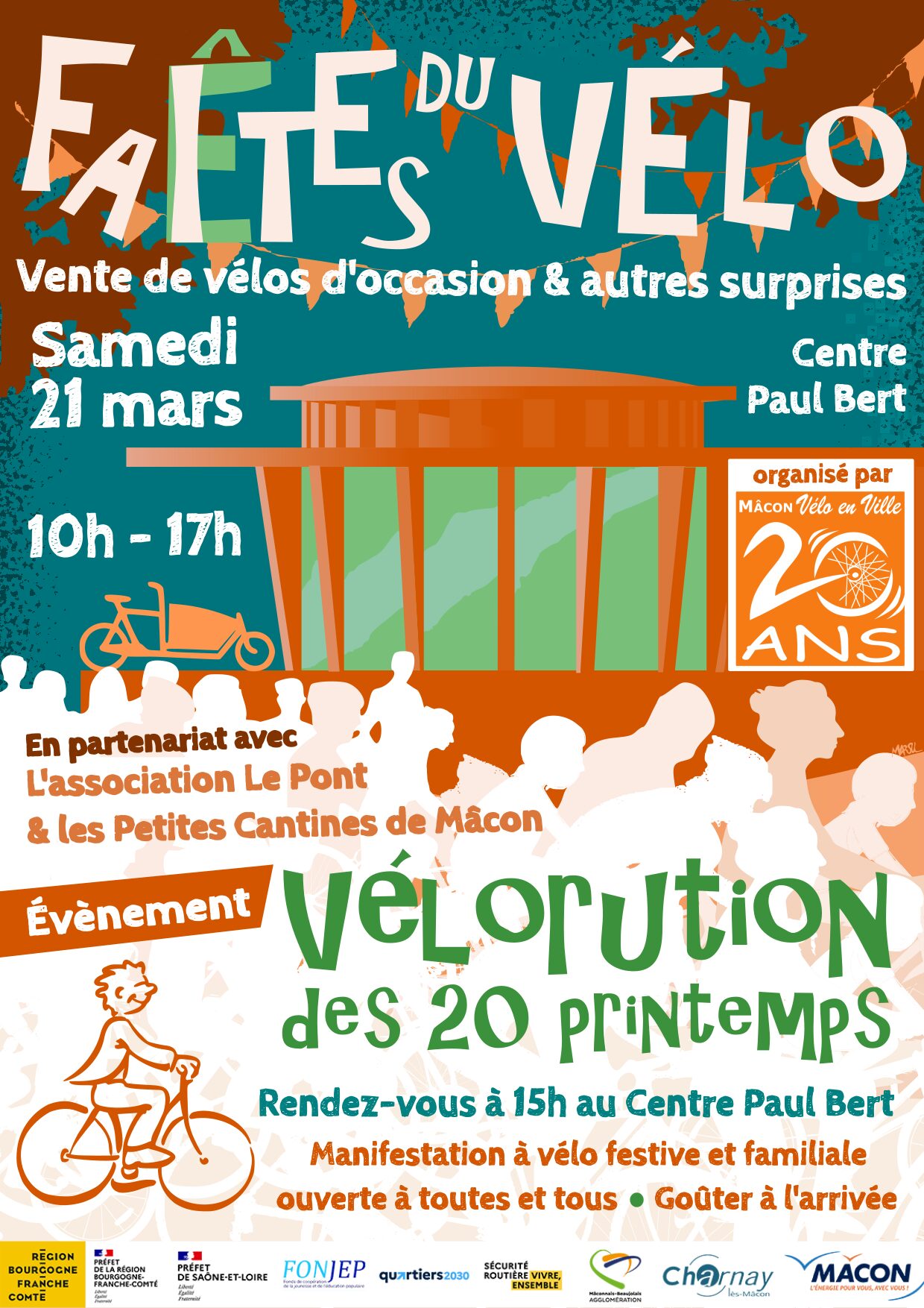 Mâcon vélo en ville est fière de vous présenter sa troisième édition de la « Faites » du vélo. Elle aura lieu samedi 21 mars de 10h à 17 heures au Centre Paul Bert, à Mâcon. C’est l’occasion pour nous de sortir notre stocks de vélos réparés et entretenus par nos réparateurs et réparatrices bénévoles,