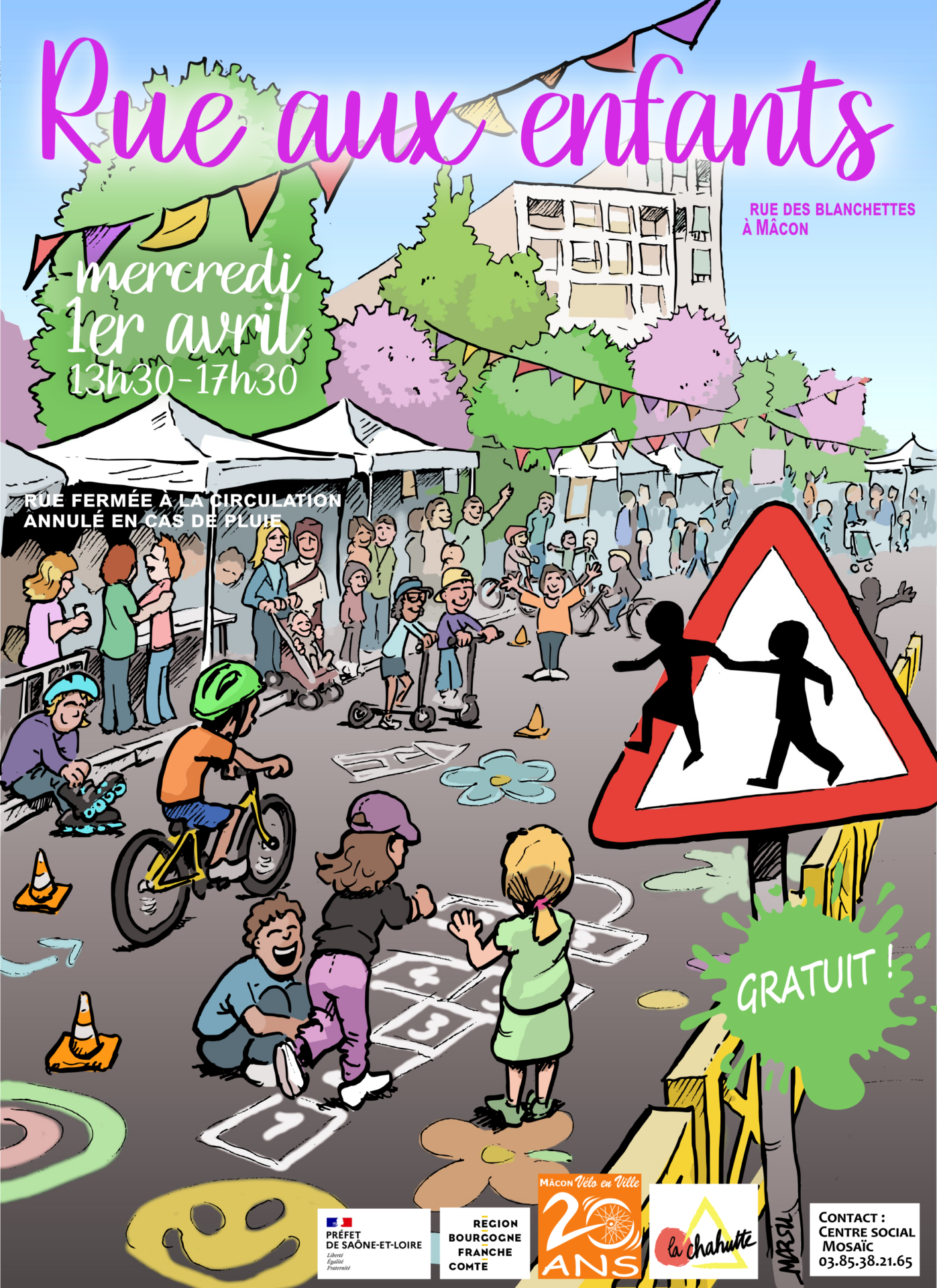 Souvenez-vous, c’était il y a bientôt un an : pour sa première édition à Mâcon, la Rue aux Enfants avait rassemblé plusieurs centaines de personnes tout au long d’un très bel après-midi ensoleillé… Alors les organisateurs-organisatrices – l’association La Chahutte, le centre social Mosaïc, la MJC des Blanchettes et Mâcon Vélo en Ville – ,