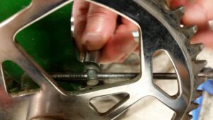 - Et on a amélioré le tendeur de chaine en remplaçant la tige d’acier trop souple par un axe rapide de roue plus rigide.