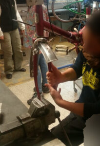 Ce mercredi 22 octobre, nous étions 8 mécaniciennes apprenantes à nous lancer dans l’aventure de la construction de 2 vélos smoothies, avec le soutien de Pauline.