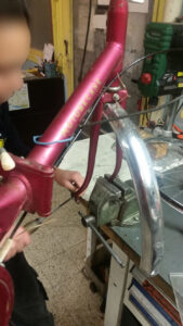 - Démontage des roues avant et arrière et remise en état de l’axe des roues