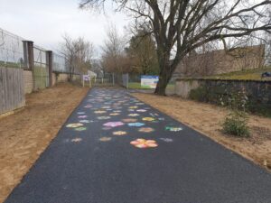 Le début de la voie, décoré par les enfants de l’école