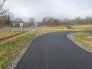 Cette voie a une double vocation puisqu’elle facilite la liaison Voie Verte / Voie Bleue, itinéraires du réseau des voies cyclables d’intérêt national.
