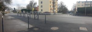 Par la rue des Trappistines : son aménagement a été réalisé à minima avec une « piste » sur trottoir, option que nous n’avons pas validée, mais nous avons obtenu le passage de la rue en zone 30. Le passage sous les voies ferrées a été sécurisé en 2025 : zone de rencontre en bas de la rue des Trappistines, stop voitures à l’intersection et double piste unidirectionnelle rue de Lyon ;